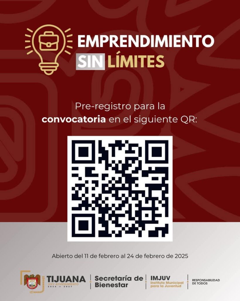 El Instituto Municipal para la Juventud (IMJUV) de Tijuana abrió el pre-registro para la convocatoria ‘Emprendimiento Sin Límites’, dirigida a jóvenes de entre 12 y 29 años que buscan desarrollar o consolidar sus proyectos.