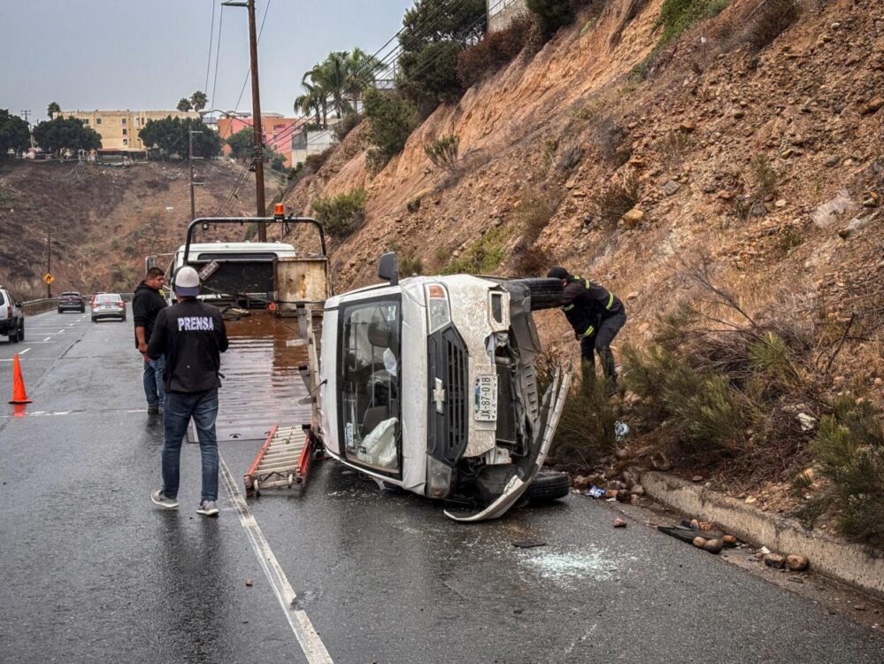De acuerdo con información preliminar, el conductor de un vehículo Chevrolet color blanco perdió el control mientras descendía por la vía, lo que provocó que la unidad volcara.