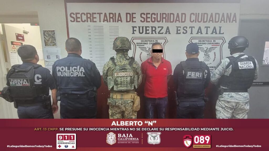 En otro hecho, en Tijuana, elementos de la FESC detuvieron a Elías Arturo “N”, de 42 años y originario de Navojoa, Sonora, quien era buscado por el delito de violencia familiar. La captura ocurrió en la calle Jorge Bueno, colonia Terrazas del Valle, dando cumplimiento al mandamiento judicial número 2939/2025, registrado bajo el NUC: 104-2025-08901. Durante esta operación, la SSPC Federal, la SEDENA y la Guardia Nacional apoyaron con seguridad perimetral.