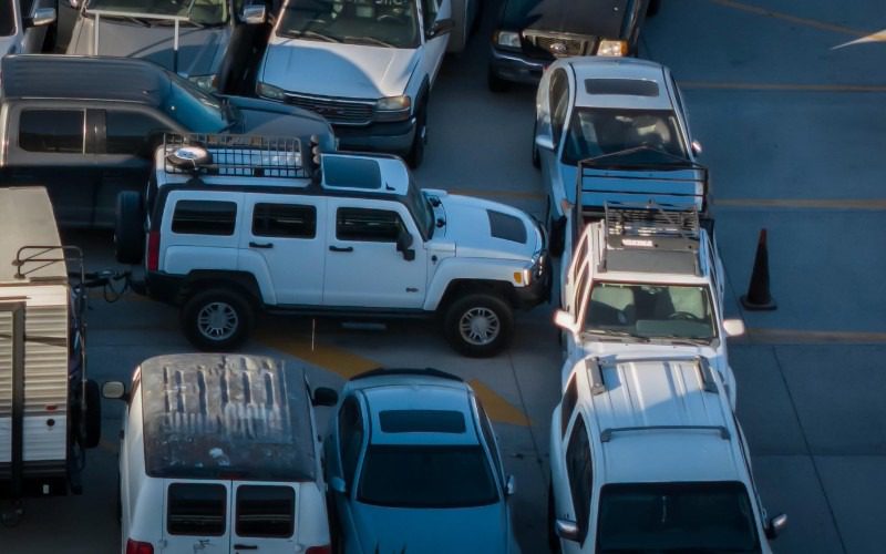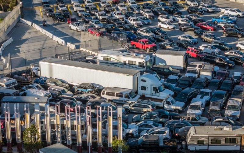 En el lote se encuentran sedanes, camionetas, pick-up, casas rodantes, autos off road e incluso camiones de carga, conformando una extensa fila de unidades retenidas en el recinto fiscal.