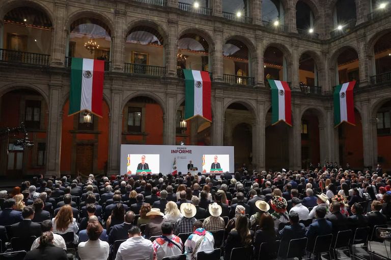 La presidenta de México, Claudia Sheinbaum Pardo, rindió este lunes su Primer Informe de Gobierno ante gobernadores, legisladores, ministros de la Suprema Corte y representantes de su gabinete. Durante su mensaje, destacó avances en seguridad, programas sociales, desarrollo económico, innovación tecnológica y reformas estructurales que, afirmó, buscan consolidar la Cuarta Transformación.