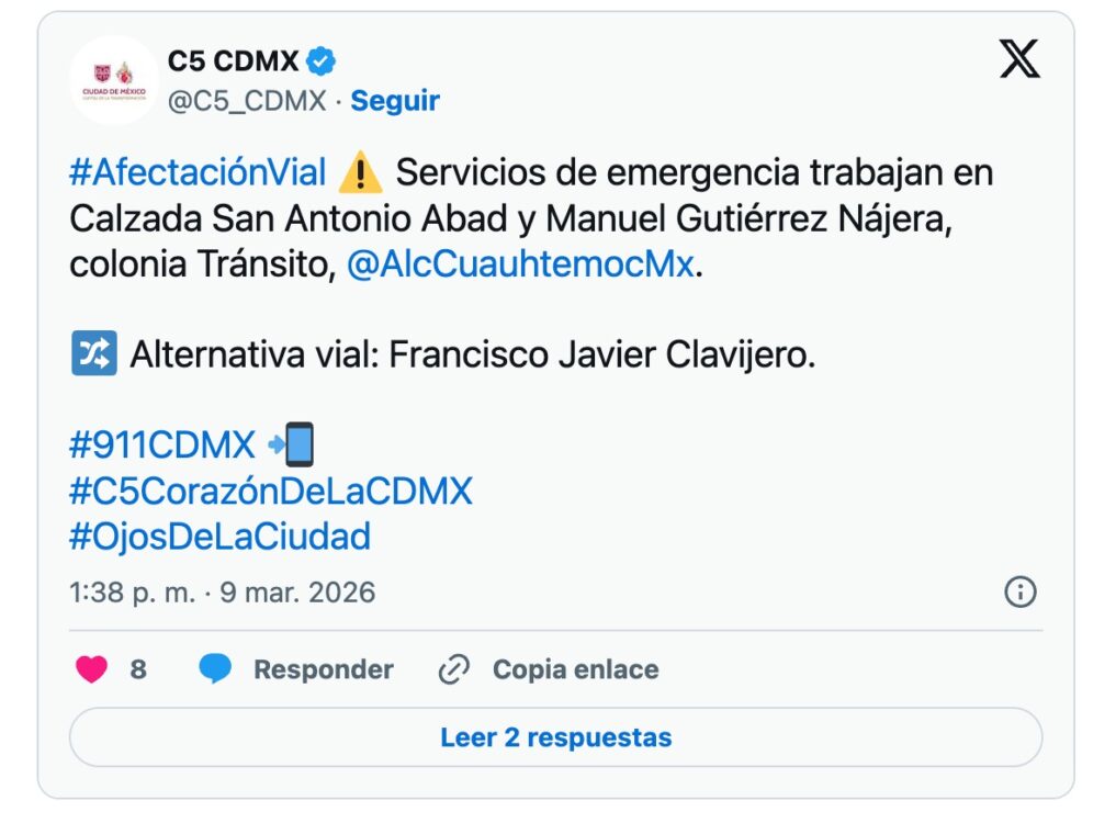 El incidente ocurrió en el cruce de Calzada San Antonio Abad y Manuel Gutiérrez Nájera, en la colonia Tránsito, dentro de la alcaldía Cuauhtémoc. De acuerdo con la Secretaría de Seguridad Ciudadana de la Ciudad de México, el inmueble se encontraba en proceso de demolición, pero el derrumbe fue accidental y no controlado.