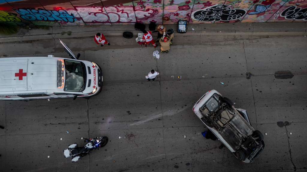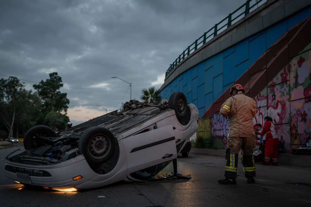 El automóvil involucrado es un Ford Focus modelo 2003 con placas de California, que quedó con las llantas hacia arriba en medio de uno de los carriles más transitados de la ciudad.