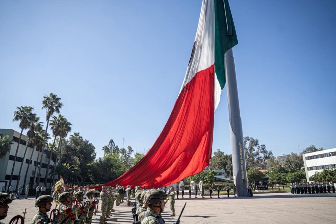 La explanada del Cuartel General de la 2da Zona Militar fue escenario del Izamiento de Bandera con motivo del Mes del Ejército, en una ceremonia realizada este jueves 26 de febrero en Tijuana.
