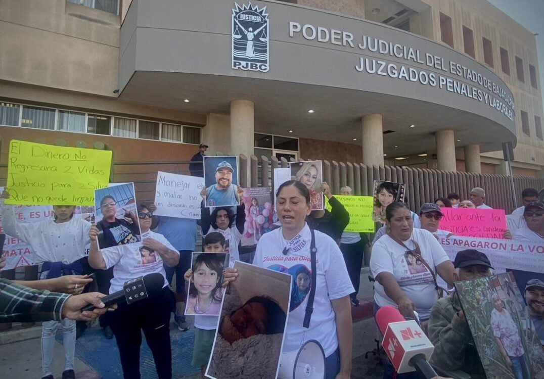 Familiares y amigos de Silvia Yáñez y Silvia Aurora López, abuela y nieta que perdieron la vida tras ser atropelladas, se manifestaron este viernes frente a los juzgados de La Mesa para exigir justicia y evitar que el caso quede en la impunidad.