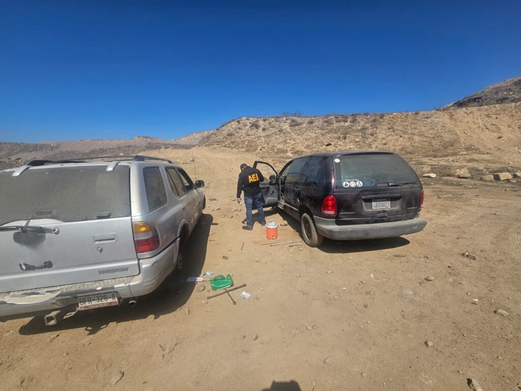 Los vehículos asegurados son una vagoneta Chrysler Voyager, modelo 1996, color guinda, con placas de California, reportada como robada el 21 de febrero de 2025, y un Honda Passport, modelo 1999, color gris, con placas de Baja California, también reportado el mismo día.