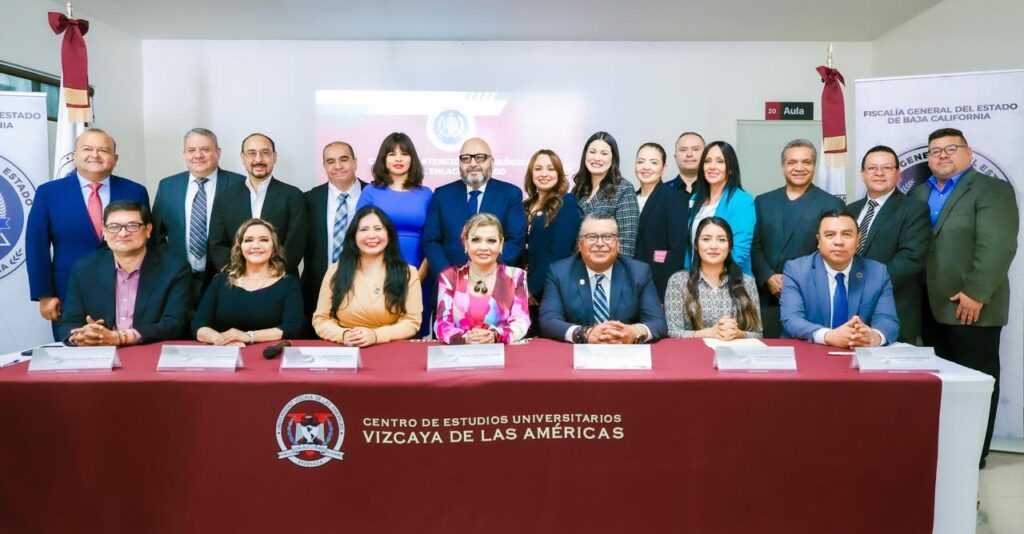 Ensenada BC. Martes 04 de marzo de 2025.- En un acto celebrado en el auditorio de la Universidad Vizcaya de las Américas, campus Ensenada, la Fiscal General de Baja California, Dra. Ma. Elena Andrade Ramírez, rubricó convenios de colaboración con dicha institución educativa y la Academia Internacional de Licenciados en Derecho. El evento, que congregó a abogados, académicos y estudiantes, destacó el compromiso de la Fiscalía con la formación profesional y la vinculación con la sociedad.