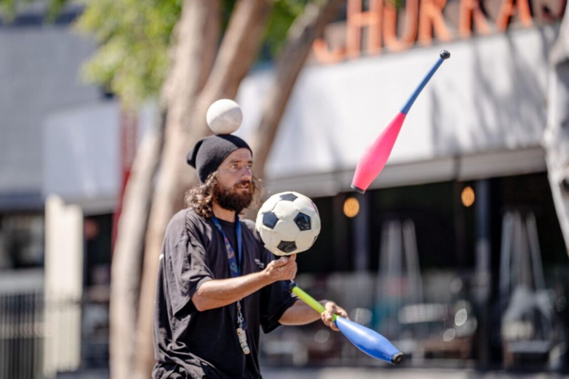 Con más de 15 años de experiencia en el malabarismo y las artes escénicas, el artista urbano Juan Ismael presenta espectáculos de equilibrismo en los principales cruceros de la ciudad.
