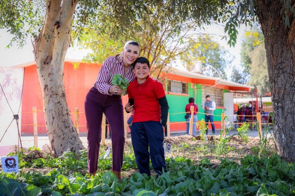 Durante una visita a la escuela primaria «Benemérito de las Américas», en el Valle de Mexicali, la mandataria destacó que estos huertos fortalecen la seguridad alimentaria y enseñan a los niños el valor de cultivar sus propios alimentos. “Trabajamos para que más familias tengan acceso a alimentos nutritivos y aprendan hábitos de consumo responsables”, señaló.