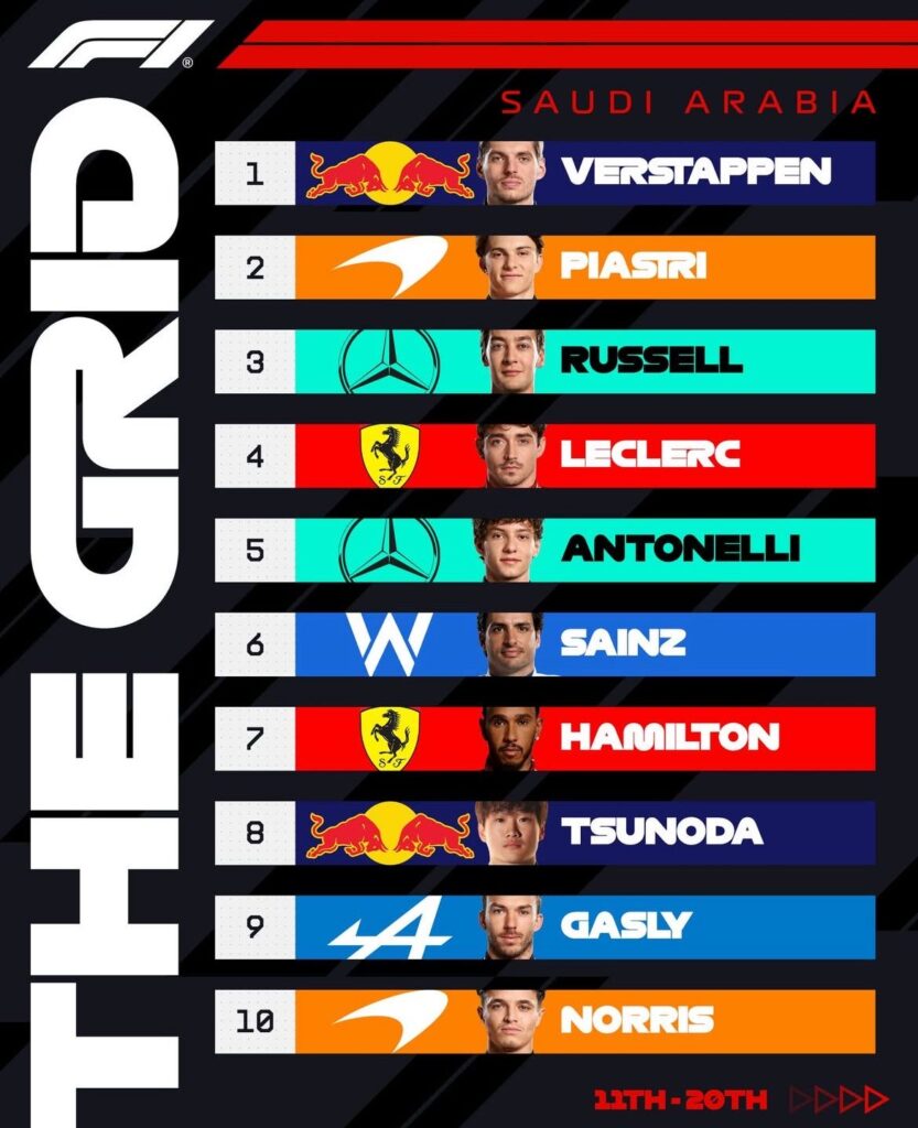 El neerlandés Max Verstappen (Red Bull), vigente tetracampeón del mundo de Fórmula 1, saldrá primero este domingo en el Gran Premio de Arabia Saudita, al ganar la ‘pole position’ en la calificación y aprovechar el golpe contra el muro de Lando Norris.