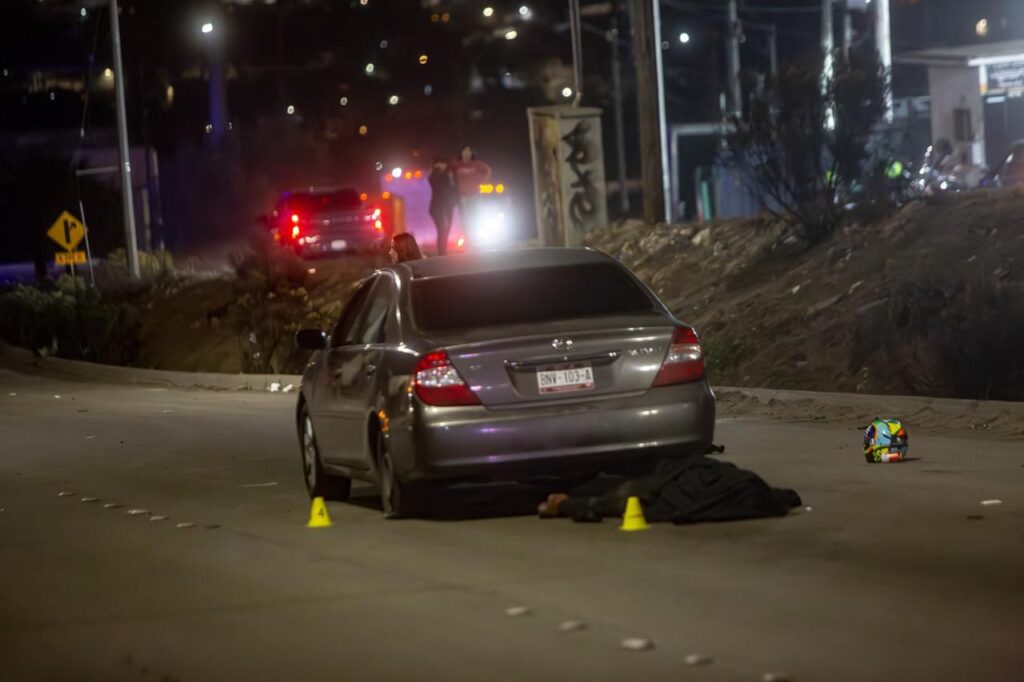 De acuerdo con el reporte, una pareja que viajaba en una motocicleta tipo Chopper terminó impactándose contra un vehículo sedán gris con placas de Baja California. Tras la colisión, ambos ocupantes quedaron tendidos sobre el pavimento.