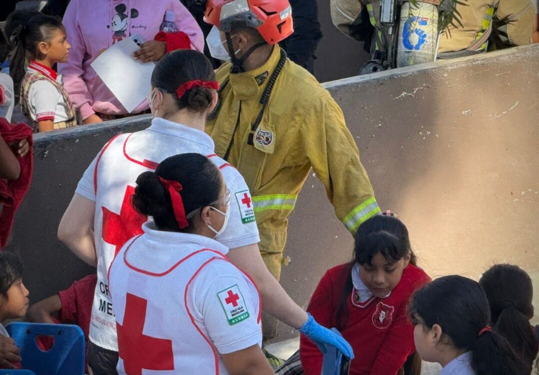 Al lugar acudieron elementos del Cuerpo de Bomberos y paramédicos de la Cruz Roja, quienes brindaron atención médica a los menores afectados, mientras padres de familia arribaron de inmediato al plantel para auxiliar a sus hijos.