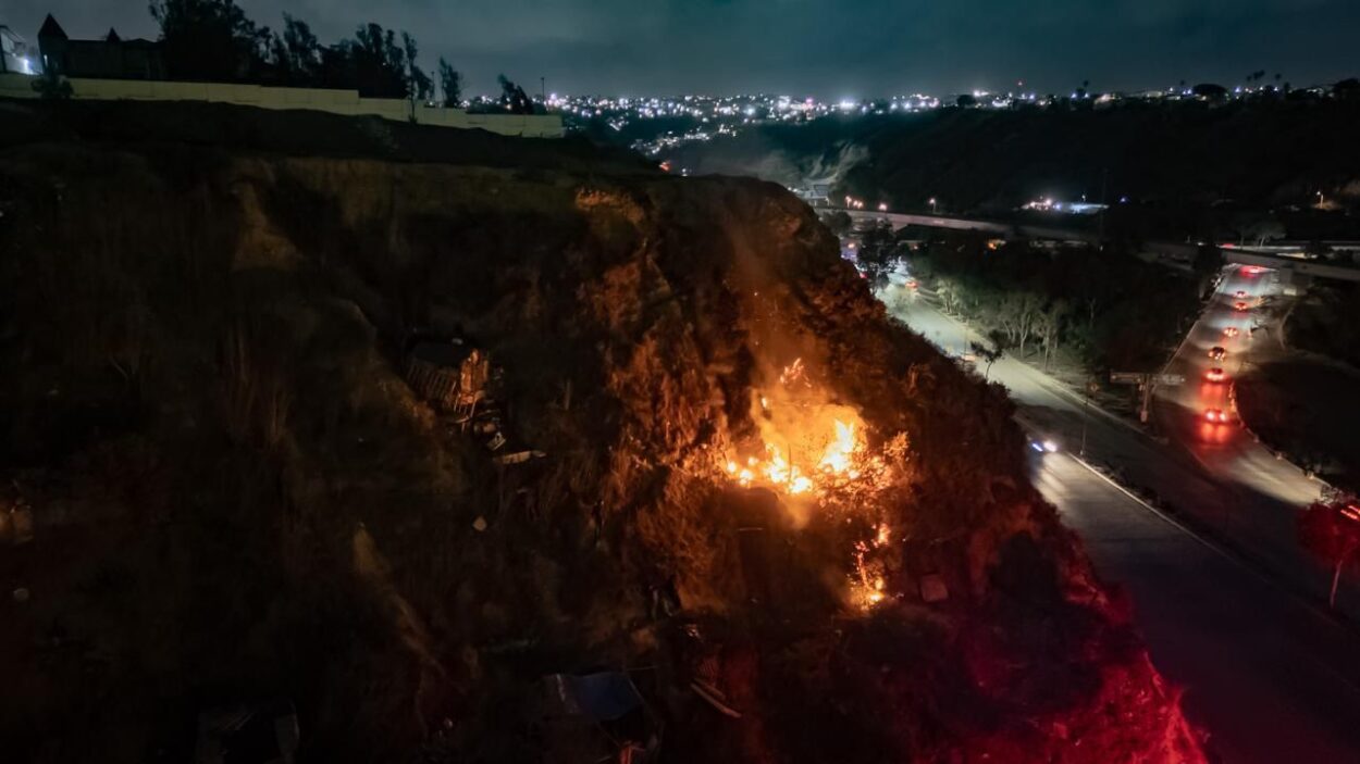La noche del viernes, el Cuerpo de Bomberos de Tijuana atendió un incendio registrado en la cima de un cerro ubicado a un costado de la avenida Internacional, en las inmediaciones del Cañón del Matadero.
