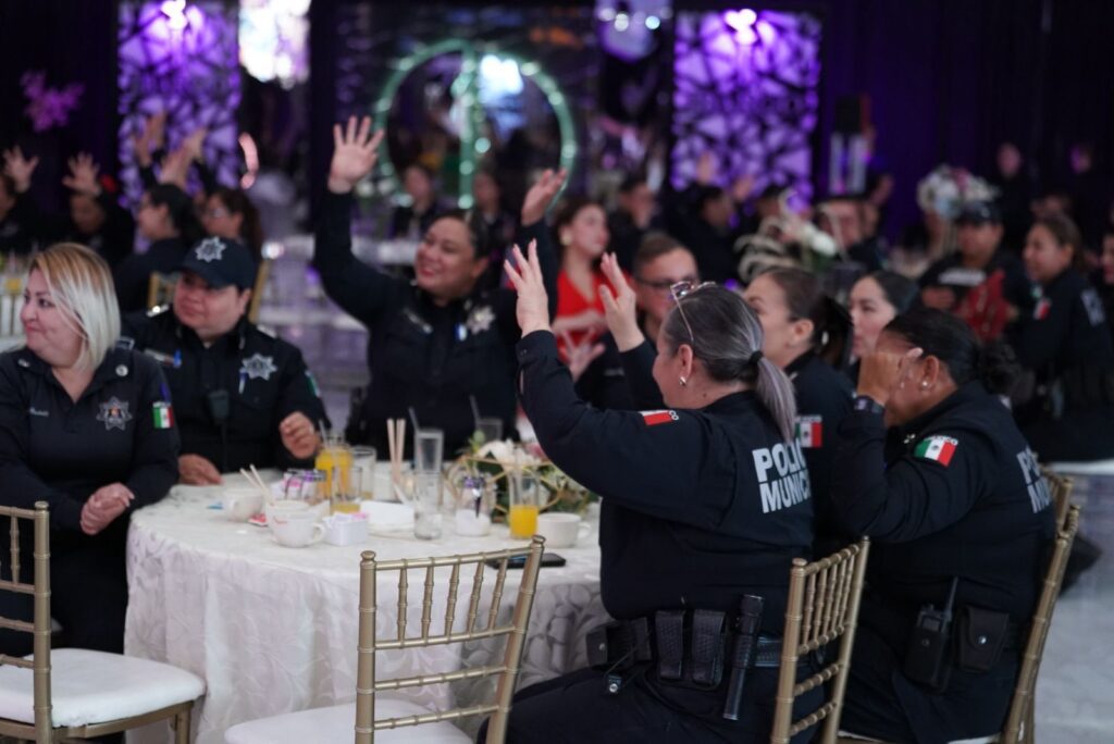 Durante su mensaje, la presidenta municipal reconoció la entrega y el compromiso de estas mujeres que, además de cuidar de sus hogares, velan diariamente por la seguridad de la ciudad. “Su vocación nace del amor: amor por sus familias y por la comunidad a la que protegen”, señaló Bustamante ante decenas de agentes presentes.