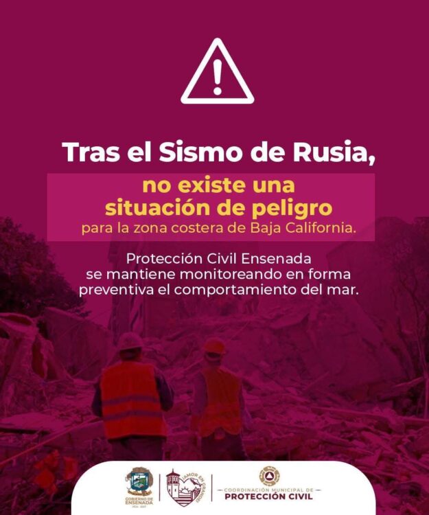 Tras la alerta de tsunami activada en el Pacífico por el sismo de magnitud 8.8 en Kamchatka, Rusia, autoridades de Baja California informaron que las zonas costeras de Tijuana, Ensenada y Playas de Rosarito no presentaron afectaciones ni aumentos anormales en el nivel del mar.