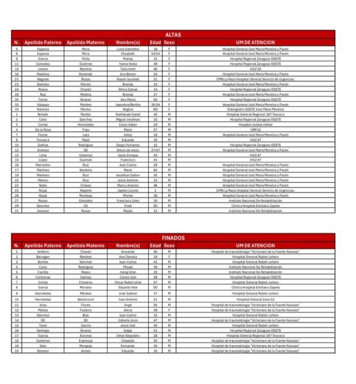 La Secretaría de Salud Pública informó esta mañana que la cifra de personas fallecidas por la explosión de una pipa en Iztapalapa ascendió a 20 víctimas mortales, tras confirmarse el deceso de Eduardo Romero Armas, de 30 años, quien permanecía internado en el Hospital “Dr. Victorio de la Fuente Narváez”, del IMSS.