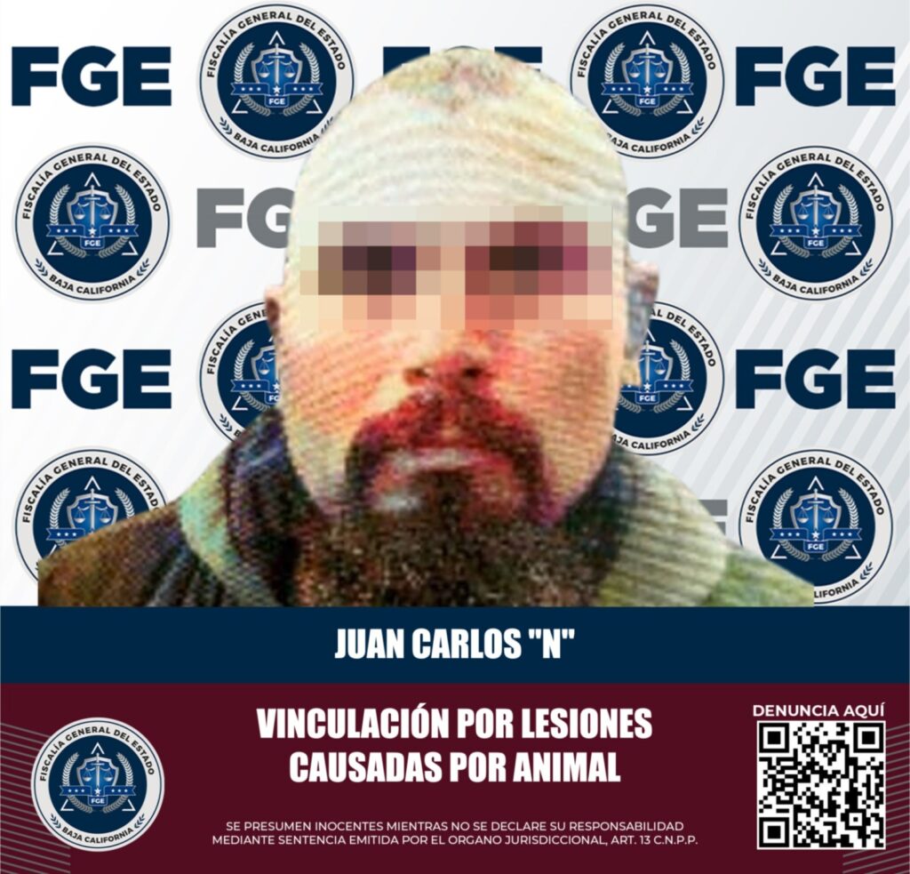 La Fiscalía Regional de Tecate informó sobre la vinculación a proceso de Juan Carlos “N” por el delito de lesiones causadas por un animal, luego de que su perro de raza Pitbull atacara a dos menores de edad.